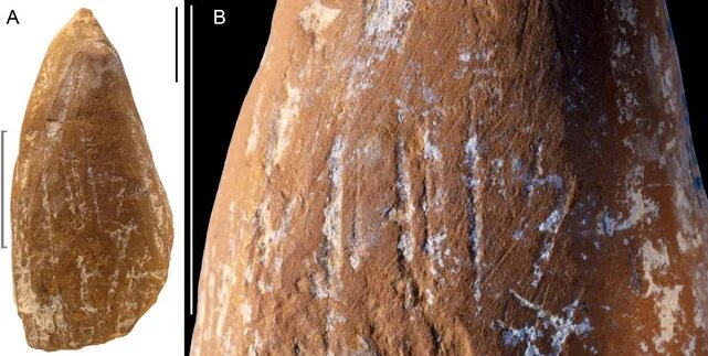 به گفته پژوهشگران، یکی از قطعات بهنظر میرسد بخشی از یک مداد شکسته باشد، درحالیکه قطعه سوم خطوطی دارد که عمدا روی پایهاش حک شده است.