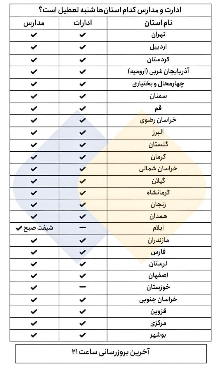 ادارات و مدارس کدام استان‌ها شنبه (۲۰ بهمن) تعطیل شدند؟/ جدول اسامی